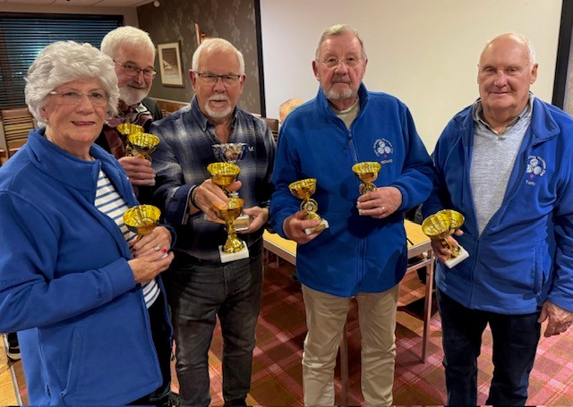 After four rounds only one team– Alex Hepburn, David Plaistow and Ray Stanton – remained unbeaten, with a massive points difference of +35. So, congratulations to this season’s runaway winners, pictured here with their trophies.